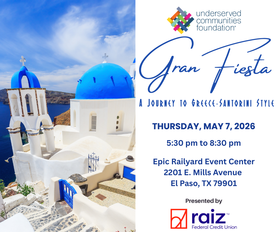 Join us for an unforgettable evening at the Underserved Communities Foundation’s (UCF) Gran Fiesta 2026, inspired by the beauty, culture, and spirit of Greece, Santorini style.